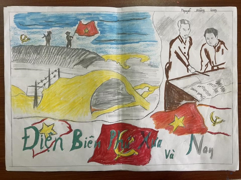 Tranh vẽ chiến thắng Điện Biên Phủ là cách mà nhiều học sinh thể hiện lòng biết ơn, sự tự hào đối với một trang sử hào hùng của dân tộc Việt Nam. Qua từng nét bút, các em không chỉ tái hiện lại khung cảnh chiến trường ác liệt mà còn bày tỏ tình yêu quê hương, lòng kính trọng với các anh hùng liệt sĩ. Những bức tranh ấy giúp thế hệ trẻ hôm nay hiểu hơn về ý nghĩa của chiến thắng lịch sử ngày 7/5/1954 – một dấu mốc làm chấn động địa cầu và khẳng định tinh thần quật cường của quân dân ta.